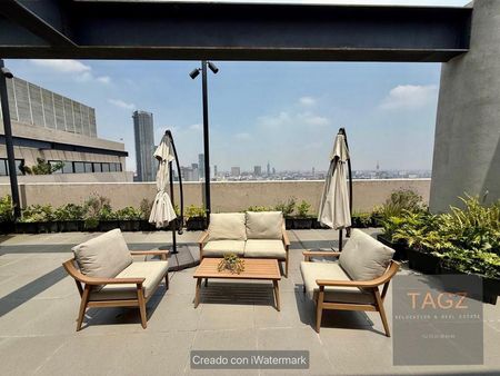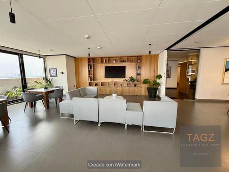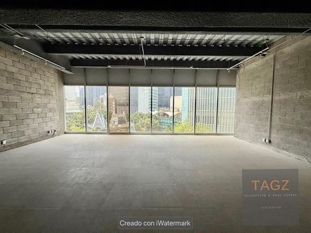 134 m2 Tiene dos medio baños y solo falta instalar los sanitarios (estan alli). Plafon metalico industrial con luminarias . Piso de losetas grandes color gris. Excelentes vistas abiertas hacia Insurgentes y Palacio Diener.